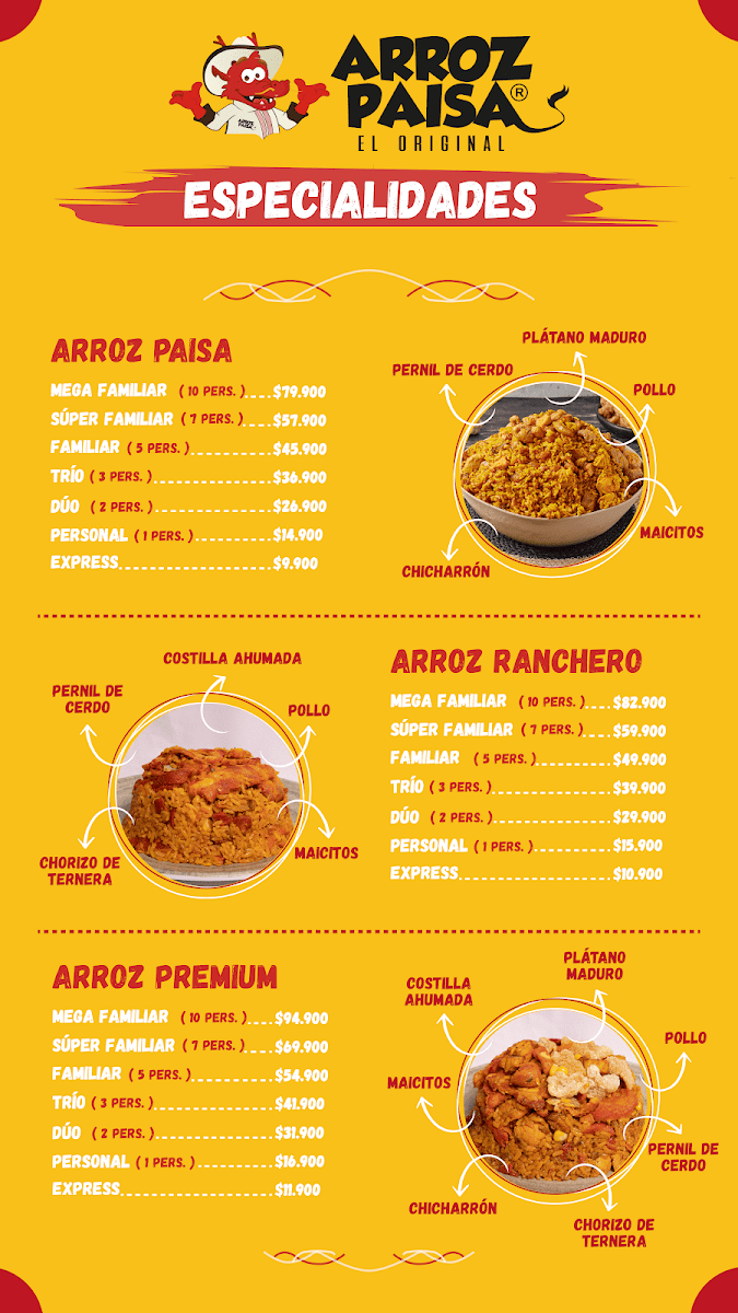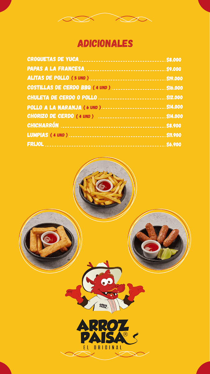 Welcome to Arroz Paisa, a hidden gem nestled in Mariquita, Tolima, Colombia. This charming restaurant specializes in traditional Colombian cuisine, offering a menu that tantalizes the taste buds while ensuring generous portions. Customers rave about the riesco pollo frito, renowned for its delightful flavors and satisfying servings. Diners have reported excellent service, with a staff that enhances the dining experience through their warm, inviting attitude.